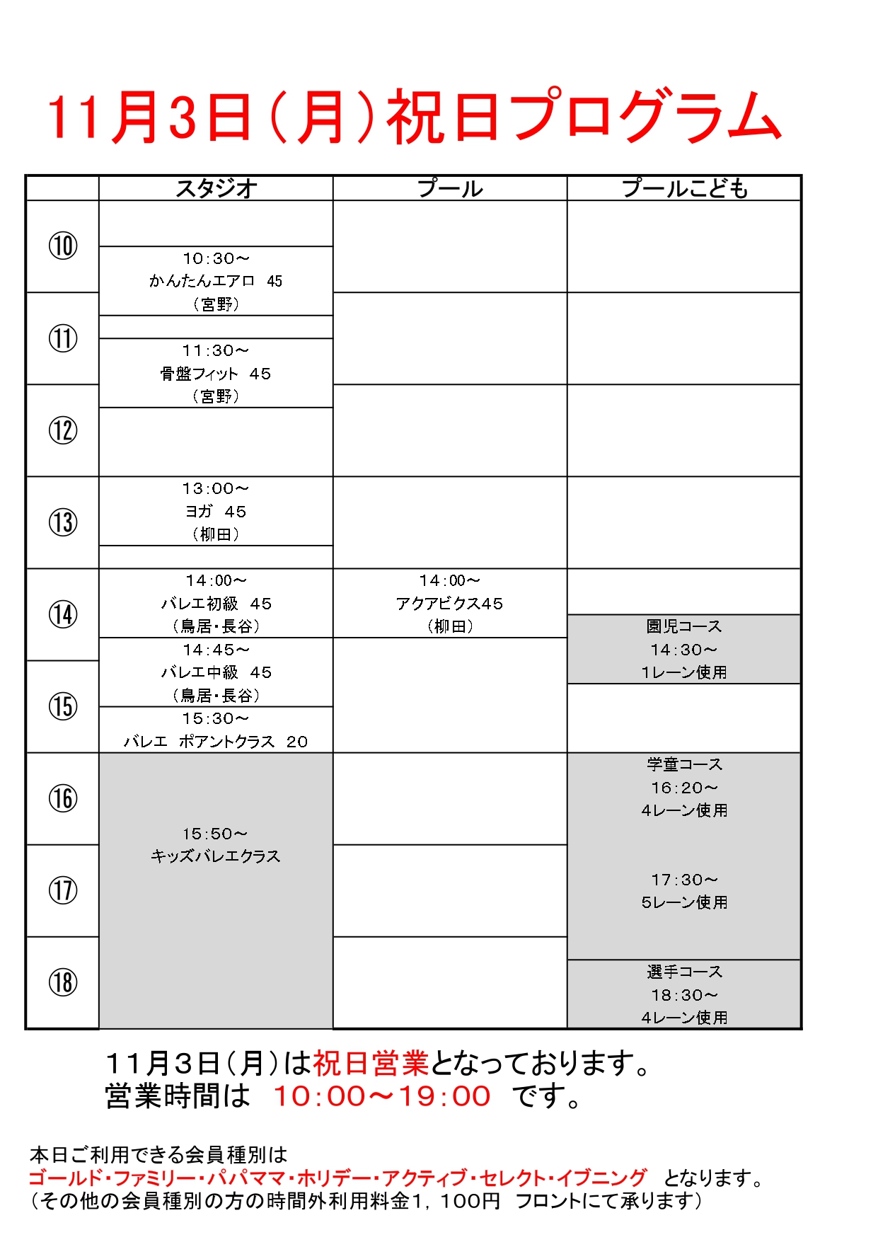 11月3日(月)祝日プログラム